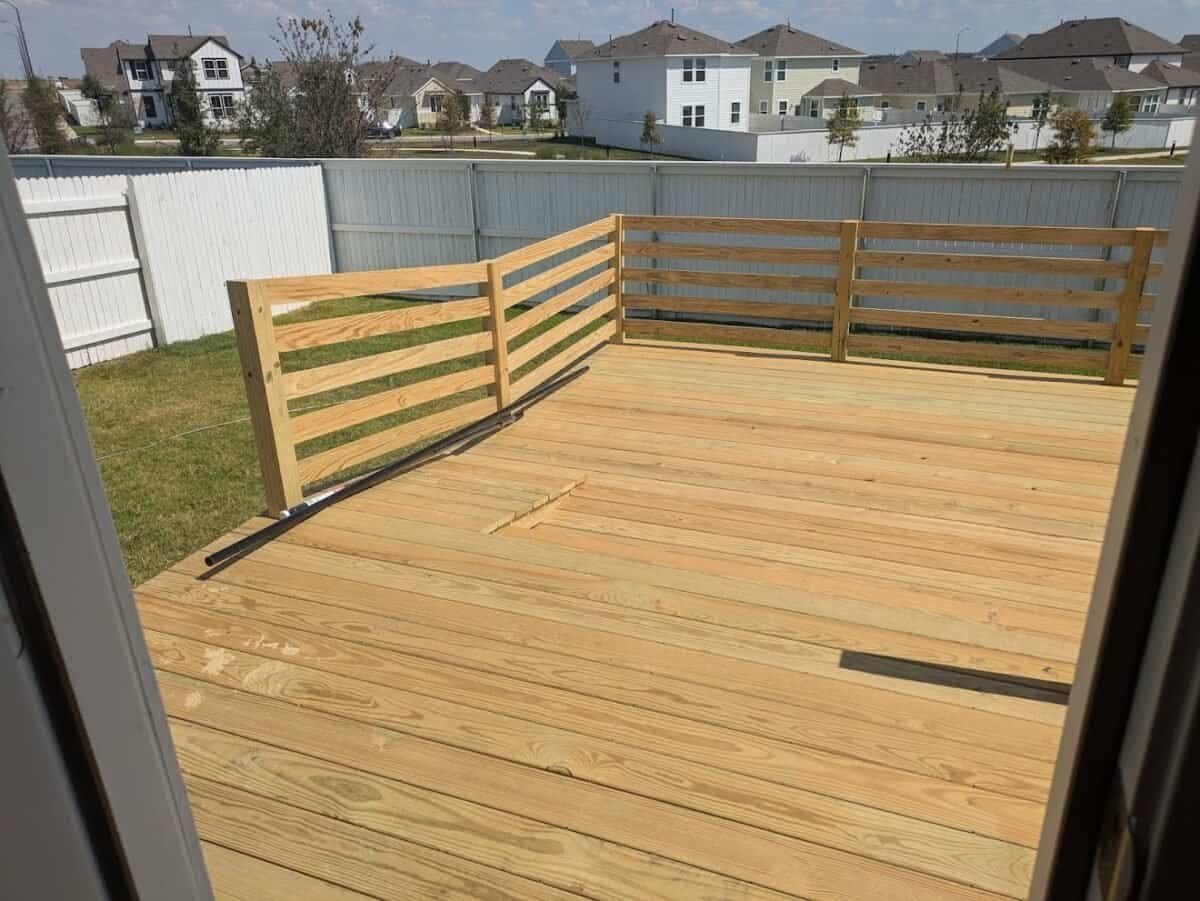 A board-on-board fence gives you full privacy by overlapping vertical boards on both sides of the rail. You won’t see any gaps between the planks.